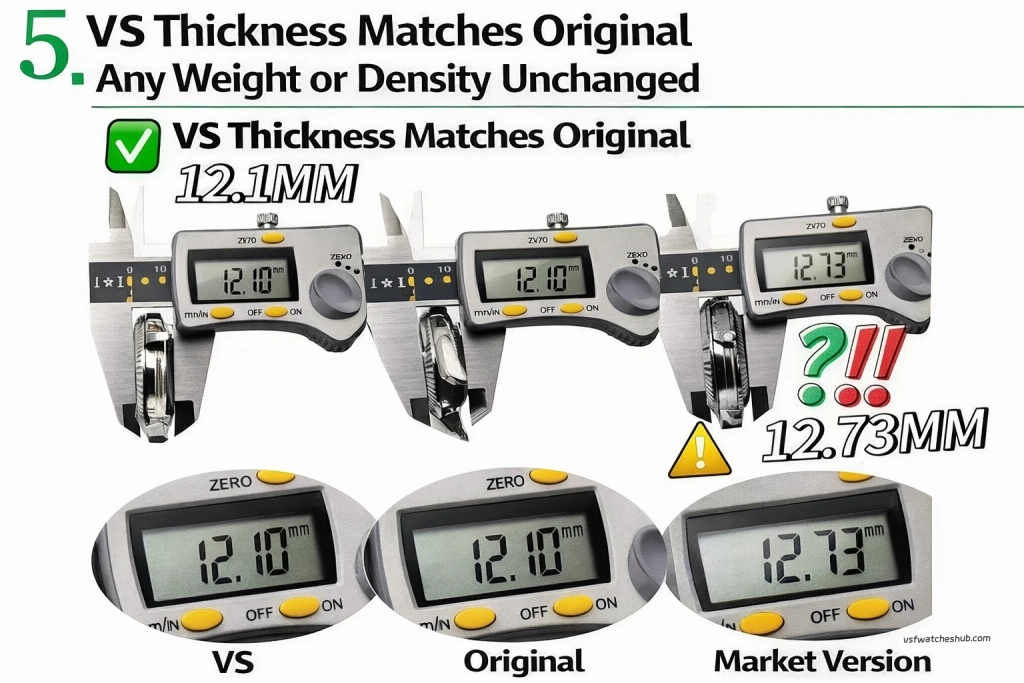 If you're not obsessing over hitting gen weight, this VS version is the move. Everything else — dial, case finishing, movement — it's the best available right now. Full stop.