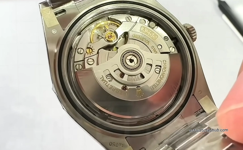 OK here's the big one. Pop the caseback off and you're looking at a Dandong-made 3255 integrated movement. This is exclusive to VS Factory right now — nobody else is running this exact caliber.