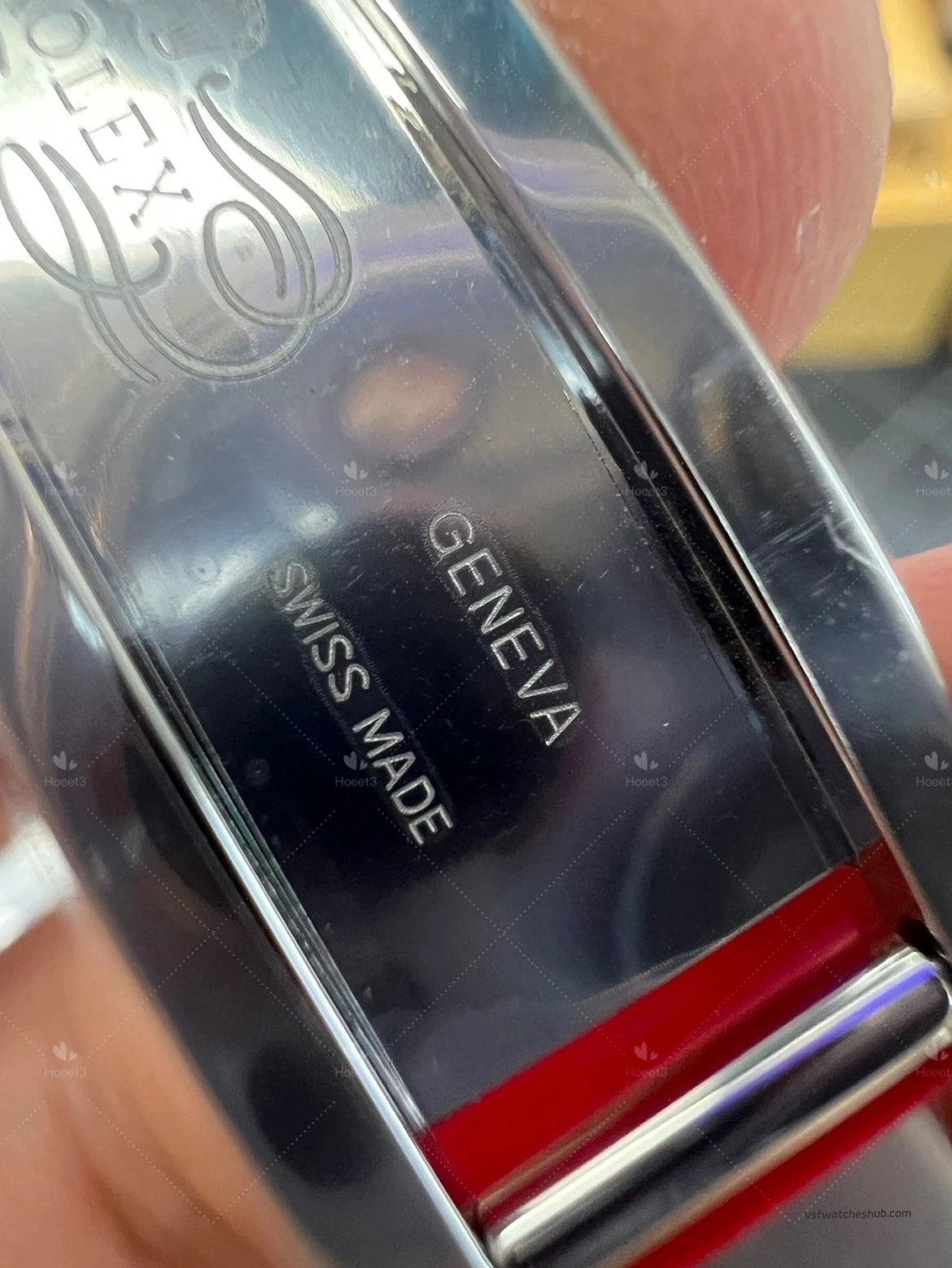 They have a bright, clean polished look that gives the watch a stronger sense of quality. If there is still one area that collectors may want to see refined even further, it would be the center pinion shape. On newer genuine models, that part has a more tapered profile with a subtle hollowed visual effect, which remains a very small but noticeable detail for experienced buyers.