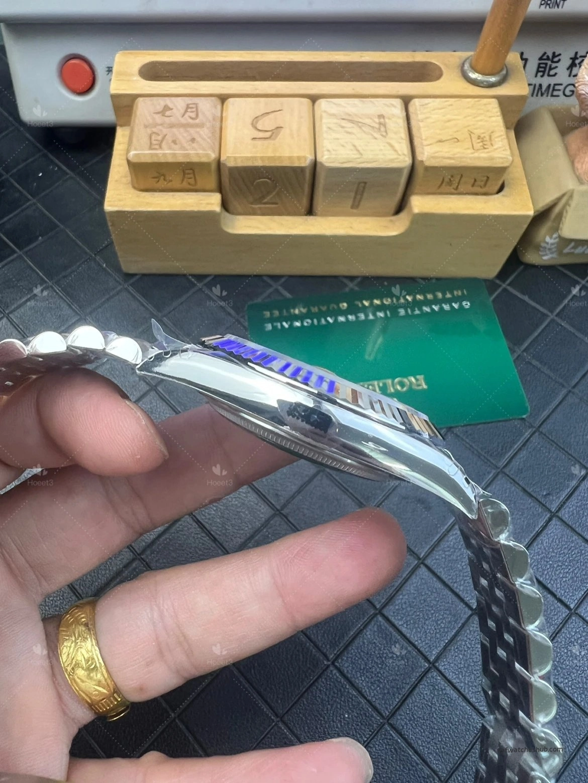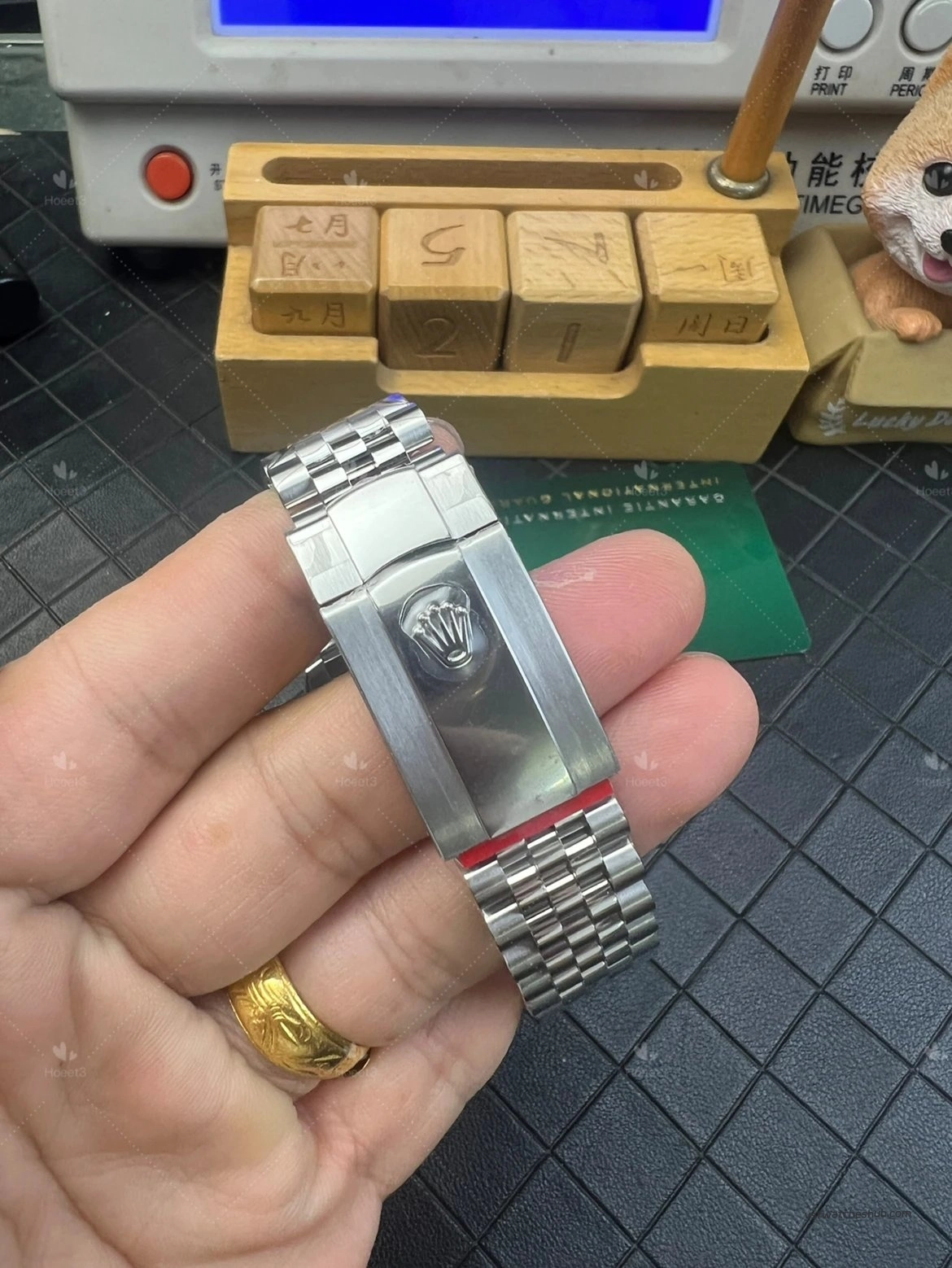 The bracelet finish looks clean, and the metal feel on the wrist is satisfying. The clasp action is also sharp and positive, which helps reinforce the impression of solid assembly quality. As for clasp codes, batch variations can exist across different production runs, which is normal and not something that should be overinterpreted on its own.