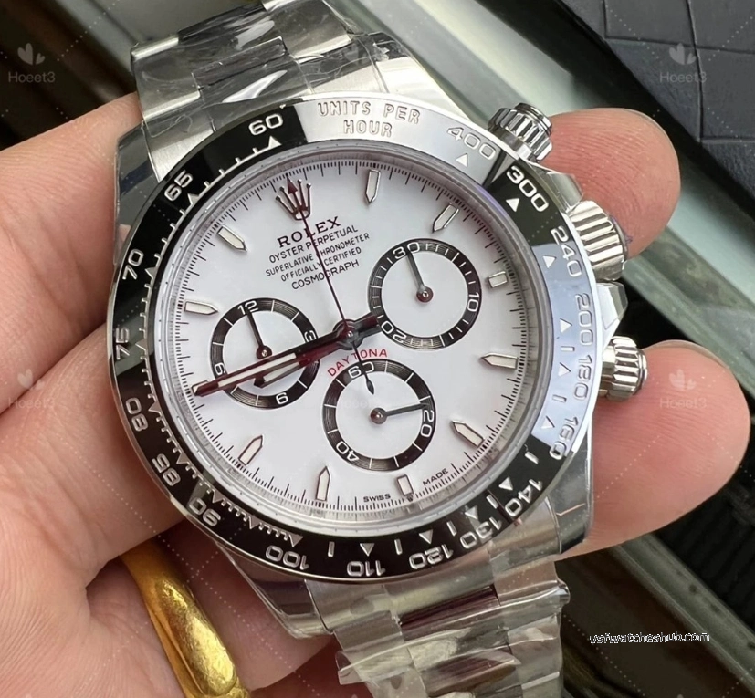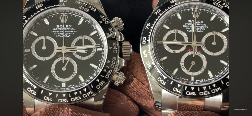 Compared to Clean’s Daytona, the VSF version gets praise for its case shape accuracy and bezel engraving depth. The ceramic bezel tachymeter markings are filled cleanly. Dial texture on the panda version is well-executed.