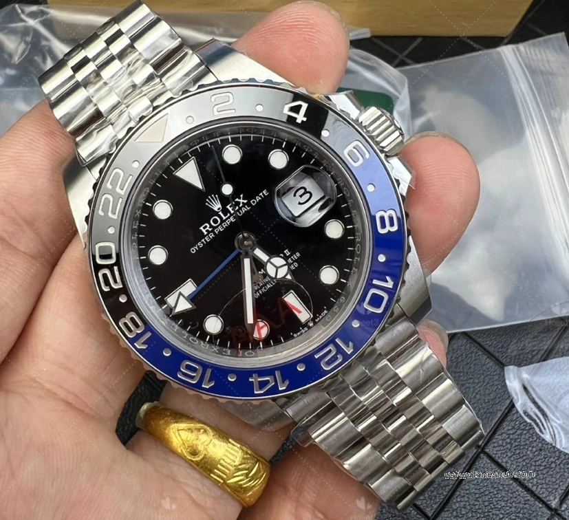 The VS3285 movement inside handles the GMT function correctly — independent hour hand adjustment, correct jumping mechanism. The bezel color transition point is close to gen, though this varies slightly between batches.