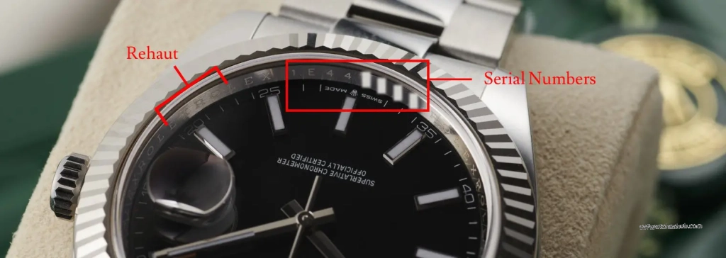 The rehaut on VSF Rolex models has laser engraving that’s crisp and correctly spaced. Cheaper fakes often have shallow, slightly blurry rehaut text. The serial number engraving at 6 o’clock on the rehaut should be sharp.