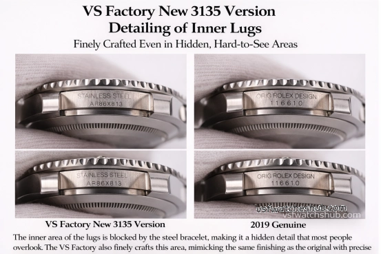 - Inner lug details of the case are the same as genuine, with vertical brushing and engravings.