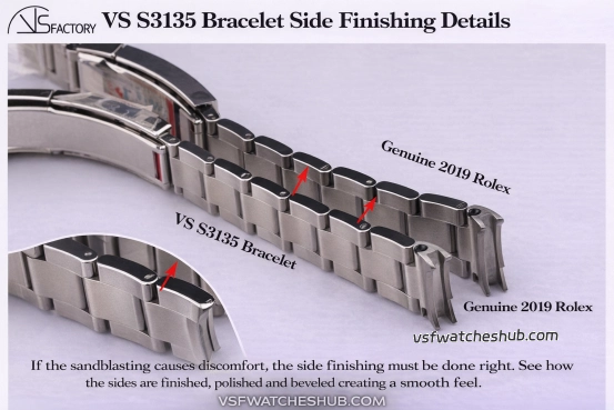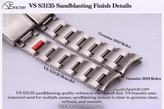 Bracelet and details: The brushed finish on the VS bracelet is more refined, better replicating the natural texture; the chamfered edges are polished smoother, making it more comfortable to wear.