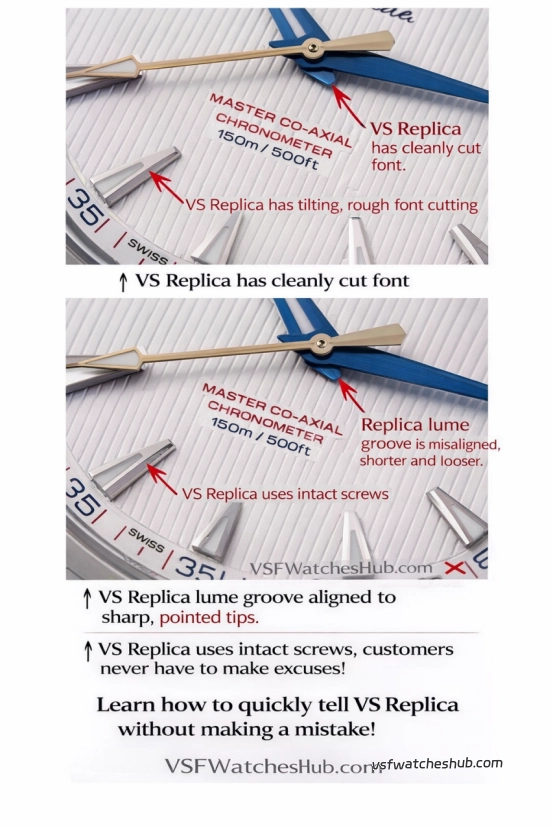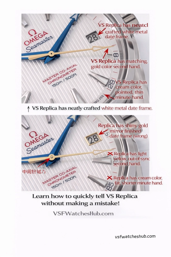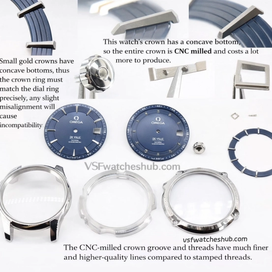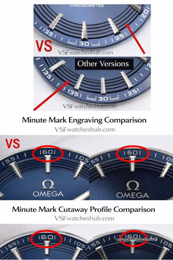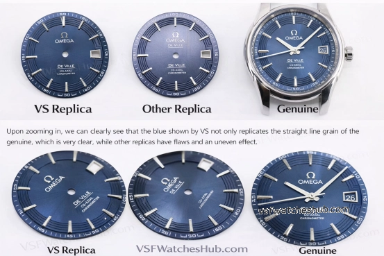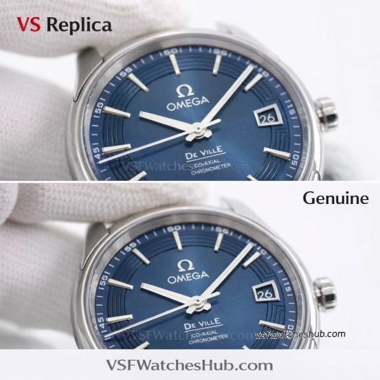 - After conquering the cal.8500 integrated movement, VS launched multiple praised models like Seamaster 600m and 150m. This time they purchased a genuine De Ville Bright Blue to make a 1:1 mold. Overall, without marking, VS and genuine are hard to distinguish.