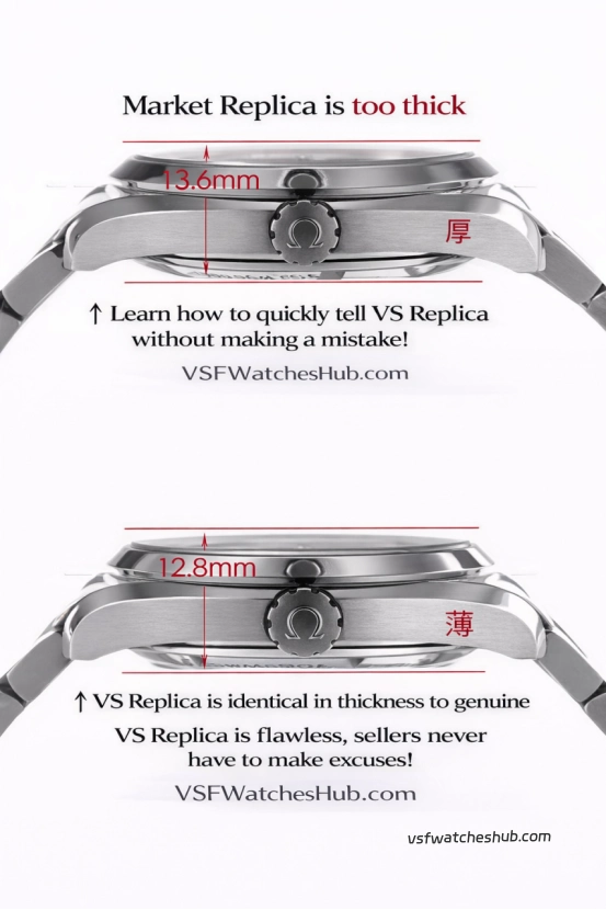 The movement of the movement in the market causes differences in thickness; VS integrated 1:1 movement has the same thickness as the original.